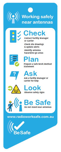 - RadioWorkSafe which provides the basic safety steps for working at known mobile and wireless communications network RF transmitting sources and includes resources to assist PCBUs and workers understand who to contact, and where to access training, safety videos and information resources.